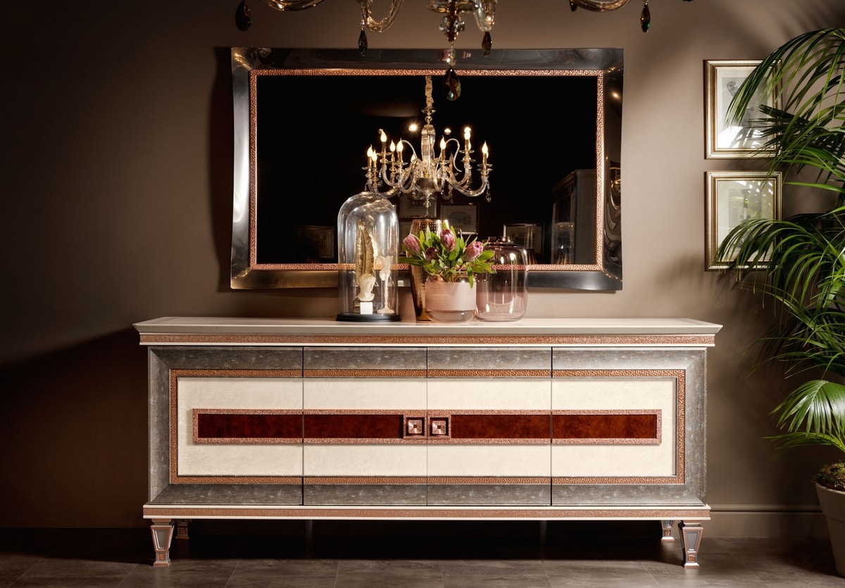 Sideboard mit vier Türen mit kostbaren Dekorationen