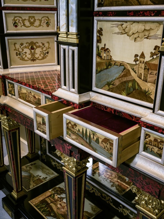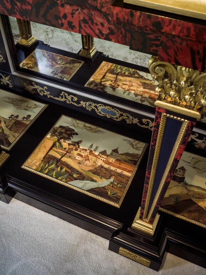 Preise anfordern Ähnliche ProdukteSideboard im Spätbarockstil mit Steinen und reichen Intarsien. Anwendungen in bronziertem Messing. Bellotti Ezio Arredamenti verfügt über eine große Auswahl an raffinierten und aufwendigen Stücken, mit unterschiedlichen Stilen, aber für Umgebungen, die Luxus und Eleganz immer gemeinsam haben. Unsere luxuriösen Einrichtungsaccessoires wurden geschaffen, um den verschiedenen Räumen des Hauses einen Hauch von Klasse und Originalität zu verleihen. In unseren Eingängen und Sälen finden unsere Reproduktionen historischer Möbel den richtigen Platz. Edelmarmor, Onyx und Alabaster tragen dazu bei, unsere Luxusmöbel zu bereichern. Die aufwendigen Intarsien, der höchste Ausdruck des Made in Italy Schreinerei, bereichern unsere Kreationen und machen sie anspruchsvoll und einzigartig.
