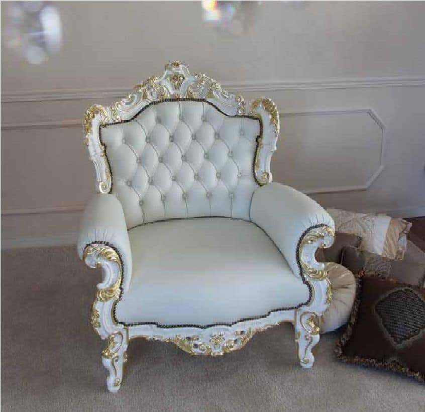 Klassischer Sessel mit gestepptem Rücken und Holzkonstruktion mit Blattgold Veredelungen. Ideal für Wohngebiete.