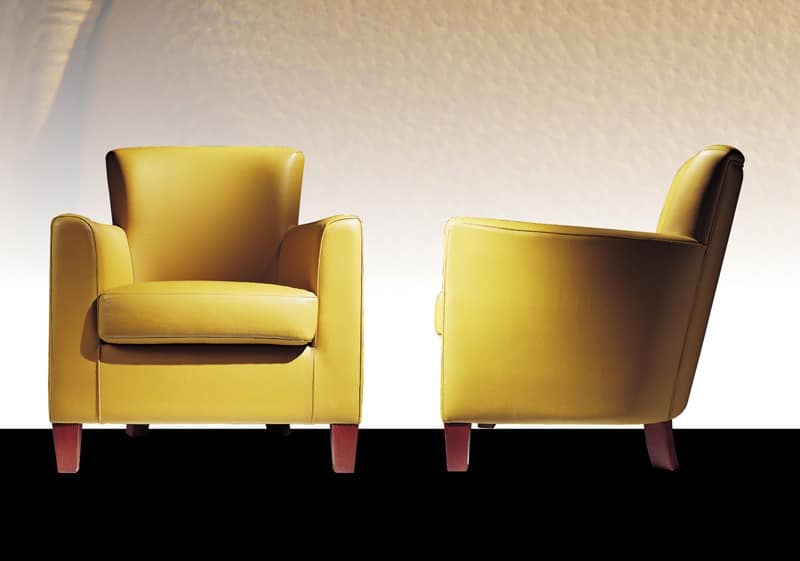 Klassischer Sessel in Leder. Komfortable und elegante Design-Modelle aus massivem Holzrahmen mit Stahlfedern und gepolsterten Polyurethanschaum und mit der Möglichkeit der Verwendung von feuerhemmenden Schaum gestützt wird. Sitzkissen in Feder, Feder mit Verstärkungseinlage oder Polyurethanschaum. Verschiedene Arten von Lederwaren und Farben sind für die Polsterung Wahl.