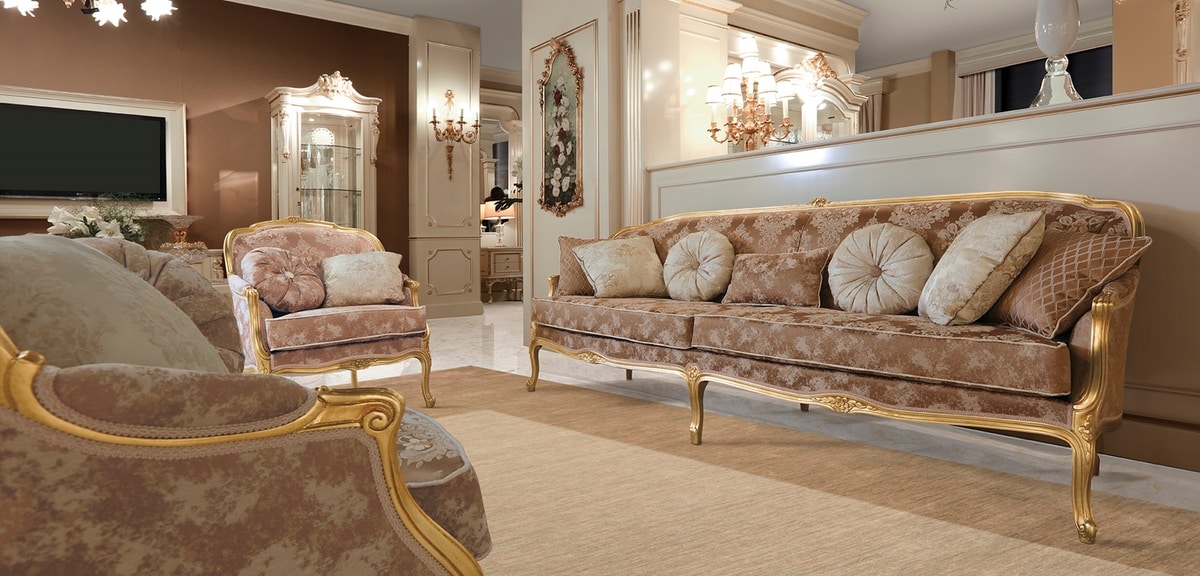 Preise anfordern Ähnliche ProdukteUnser klassischer Luxussessel mit Blattgold-Finish ist ein Meisterwerk italienischer Handwerkskunst und der Inbegriff zeitloser Eleganz und Stil. Jedes Detail ist aus einem massiven Hartholzrahmen gefertigt und von unseren erfahrenen Kunsthandwerkern handgeschnitzt, während das sorgfältig aufgetragene Blattgold dem Stück eine königliche Note verleiht.