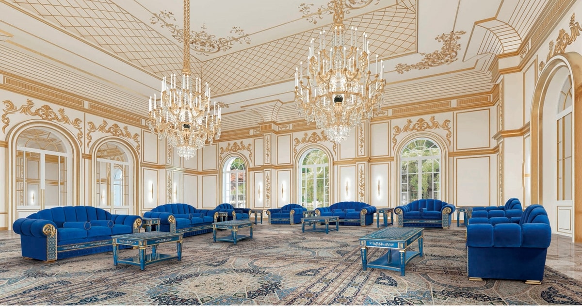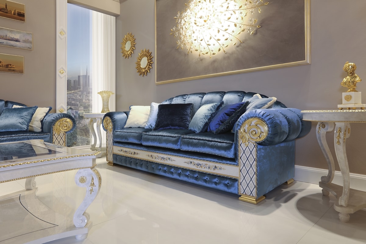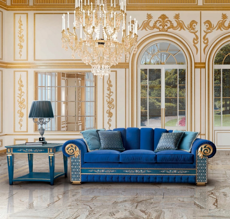 Luxuriöses Sofa mit Intarsien und Schnitzereien