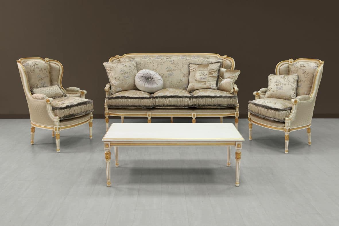 3-Sitzer-Sofa mit Stoffsessel Art. 8716 und 8717. Kat. Luxus