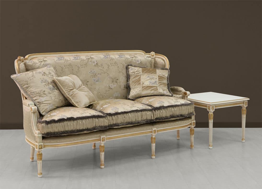 Luxus-Sofa weiß mit goldenen Ornamenten bemalt