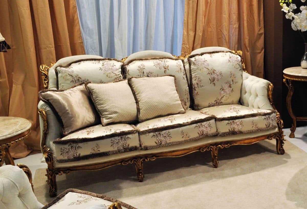 Klassisches Sofa handgeschnitzt, in Nussbaum mit Gold