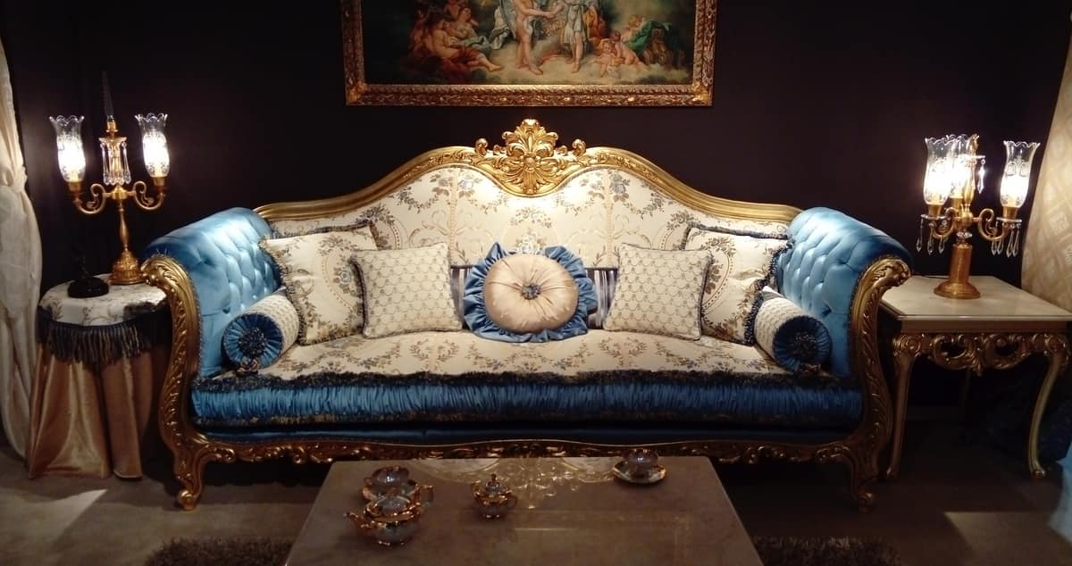 Luxuriöses Sofa mit edlen handgefertigten Schnitzereien