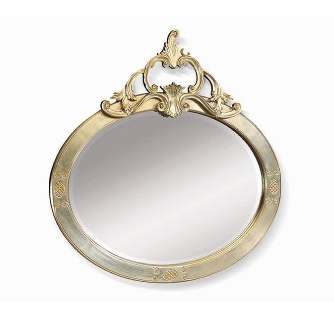 Ovaler Spiegel mit floralen Schnitzereien, im klassischen Stil gemacht.