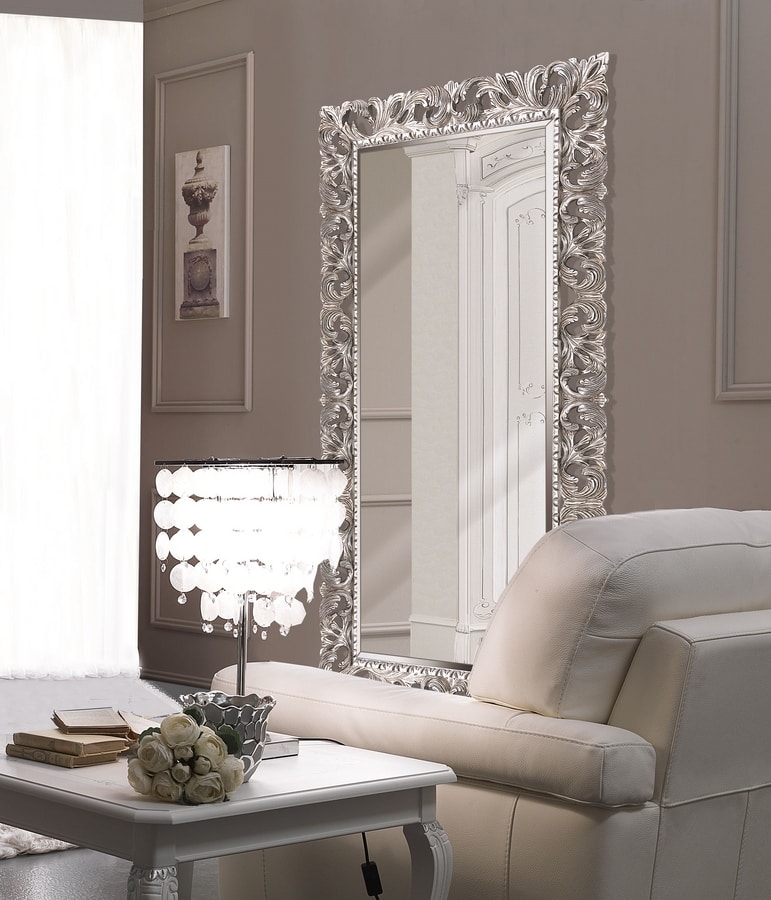 Rechteckiger Holzspiegel, vollständig aus Blattsilber geschnitzt.