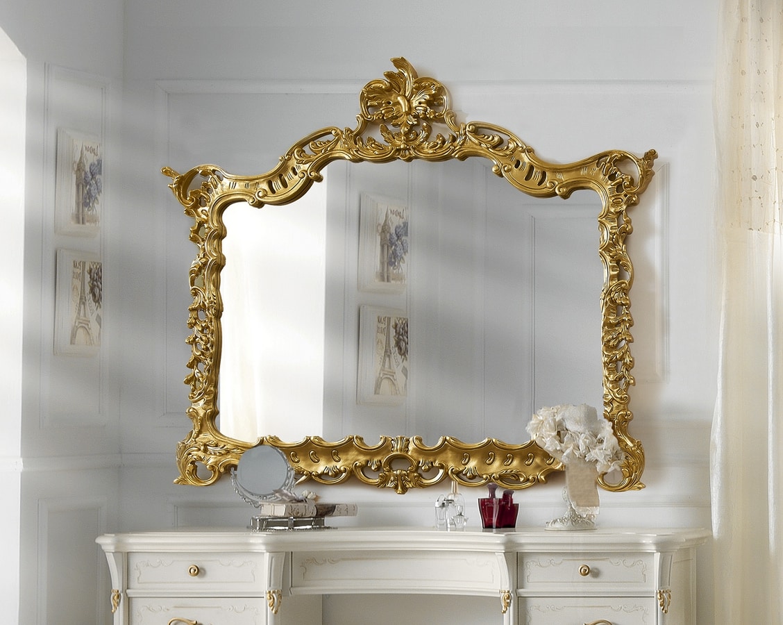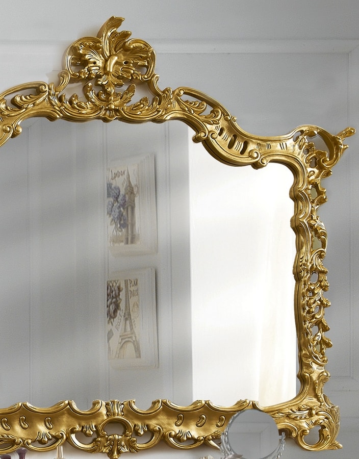 Rechteckiger geschnitzter Spiegel mit Blattgold-Finish.
