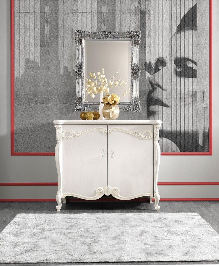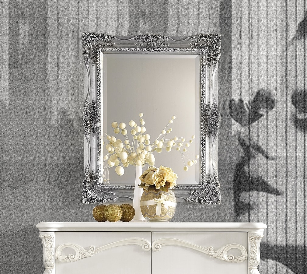 Wandspiegel mit Holzrahmen, Blattsilber, geschnitzt.