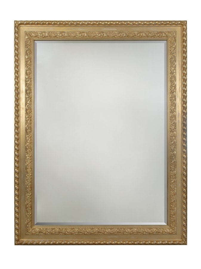Spiegel mit einem handgeschnitzten Holzrahmen, mit dekorativen Motiven verziert und in OR5 Blattgold fertiggestellt. Ein auffälliges Stück, das jedem Raum Helligkeit und Tiefe verleiht und den Raum mit zeitloser Eleganz verbessert.