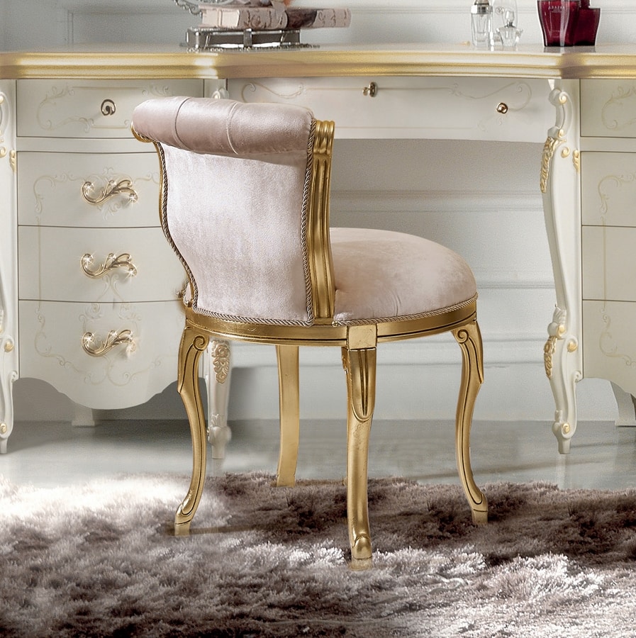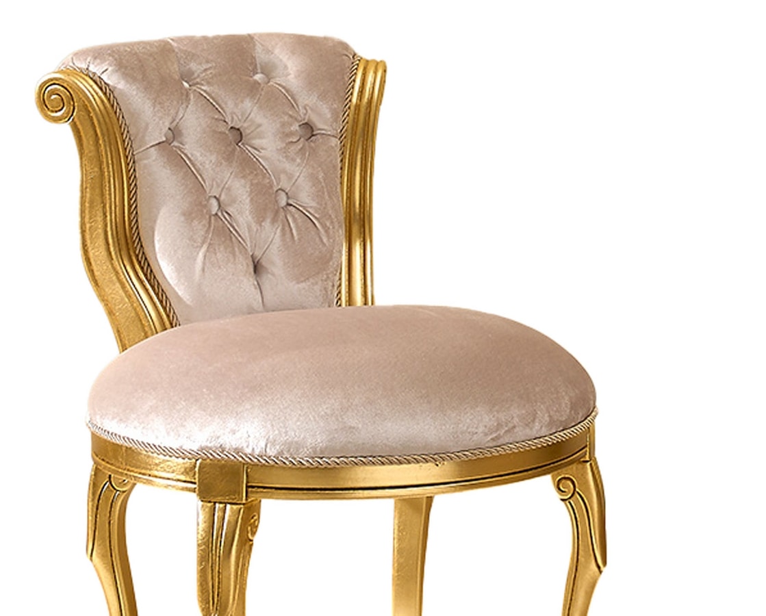 Gepolsterter Stuhl im klassischen Stil mit Holzstruktur in Gold-Finish.