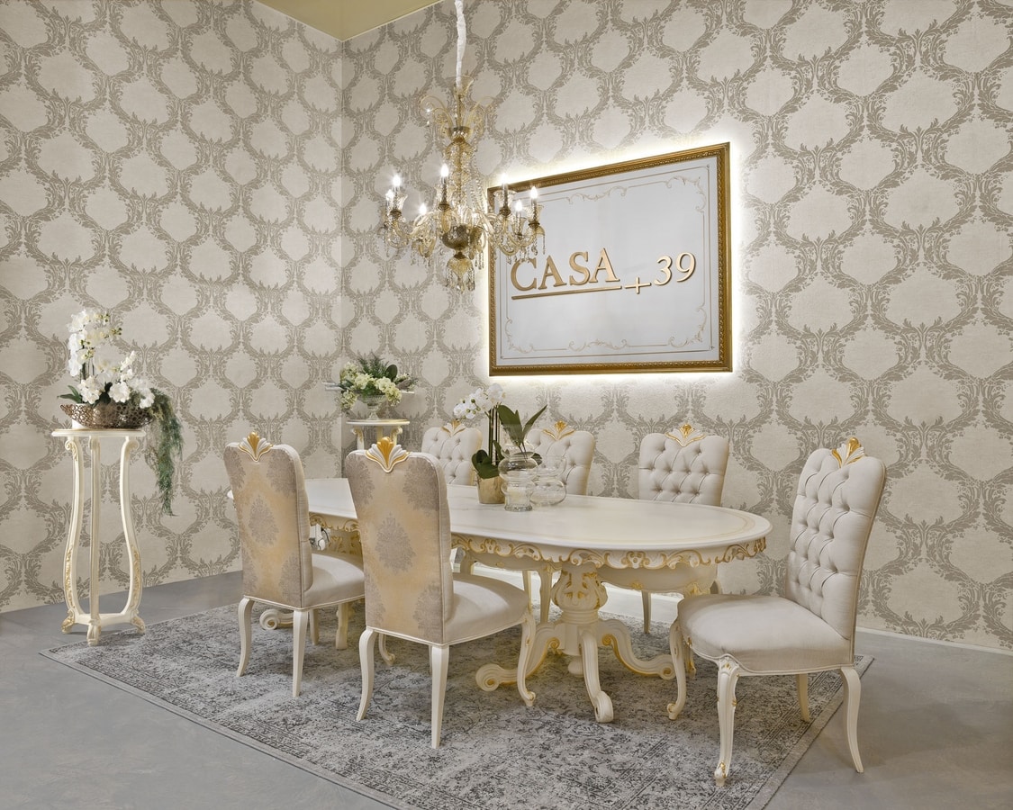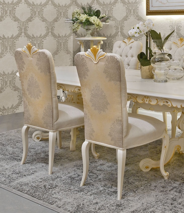 Lux lackierter Stuhl, Polsterung aus Damaststoff.
