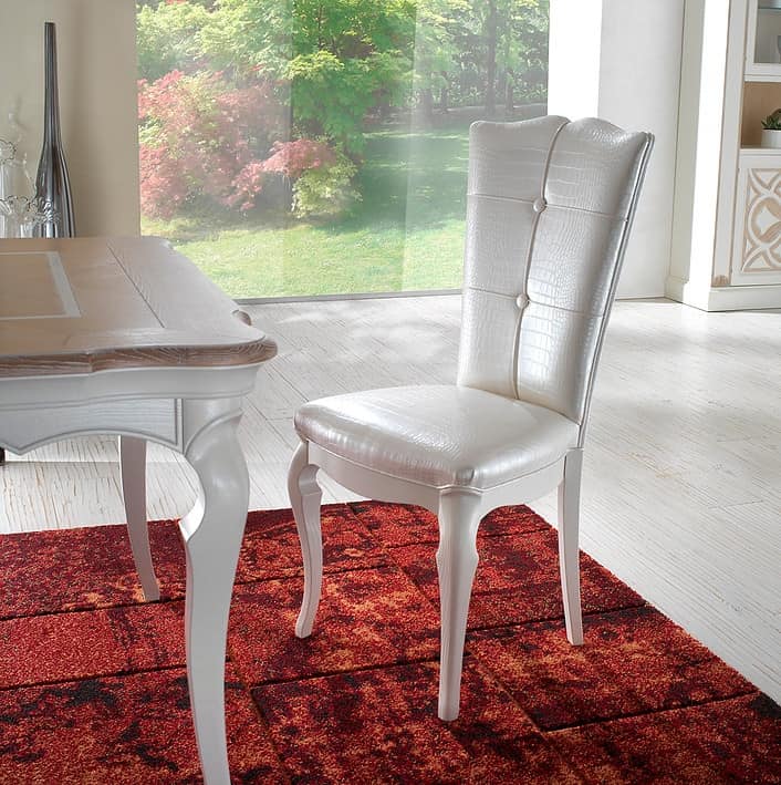 Die Stühle Villa Foscari sind Esche gebürstet, gepolstert mit Kunstleder oder Krokodil bedruckte Stoffe von hoher Qualität.