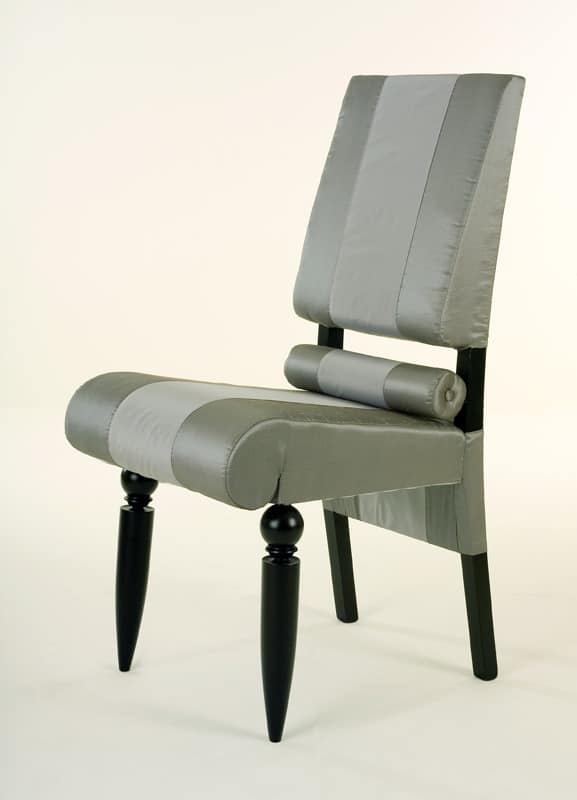 Holzstuhl mit klassischen Stil. Stuhl mit Holzstruktur und gedrechselten Beinen, Rücken und Sitz gepolstert. Roller Kissen enthalten.