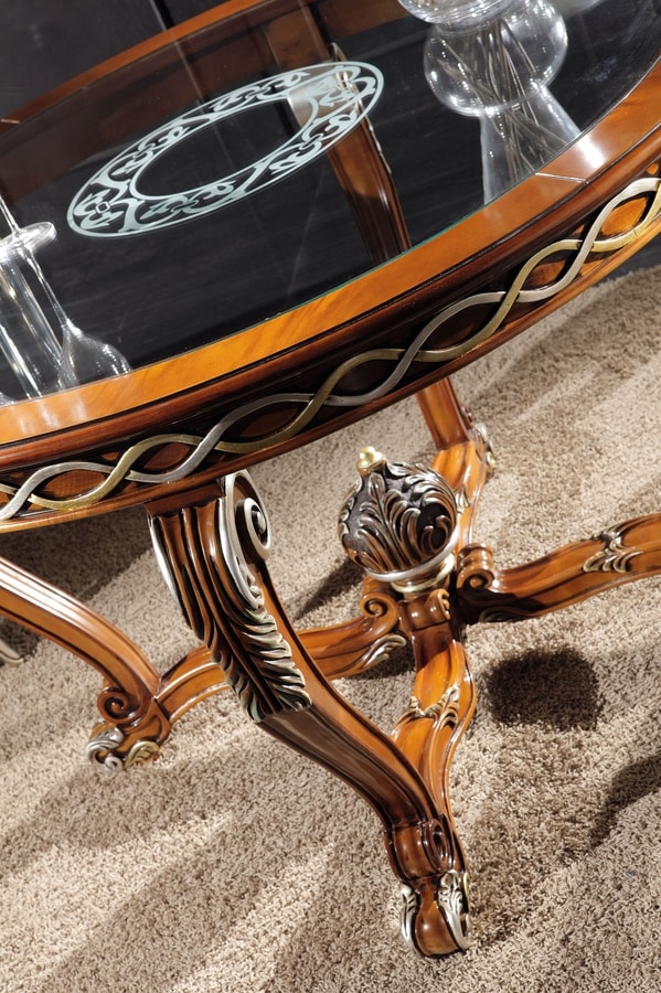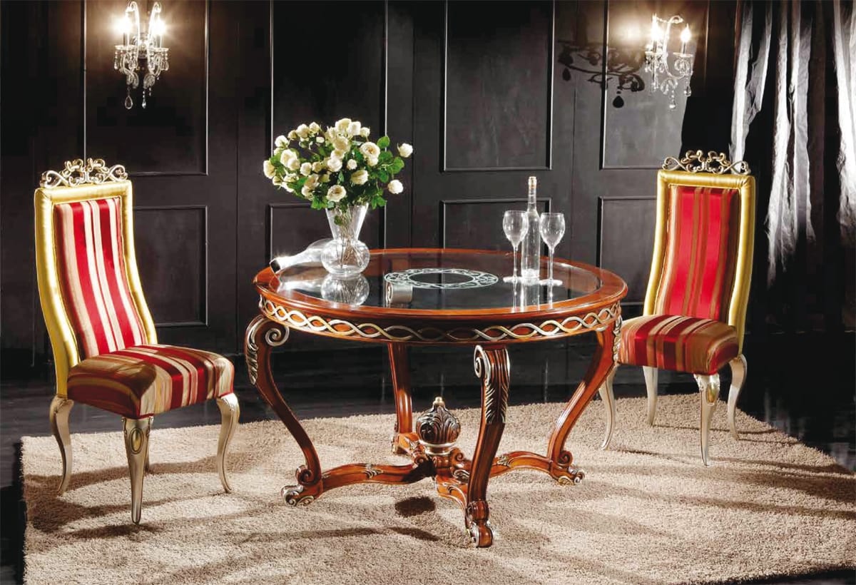 Klassischer runder Tisch mit Glasplatte