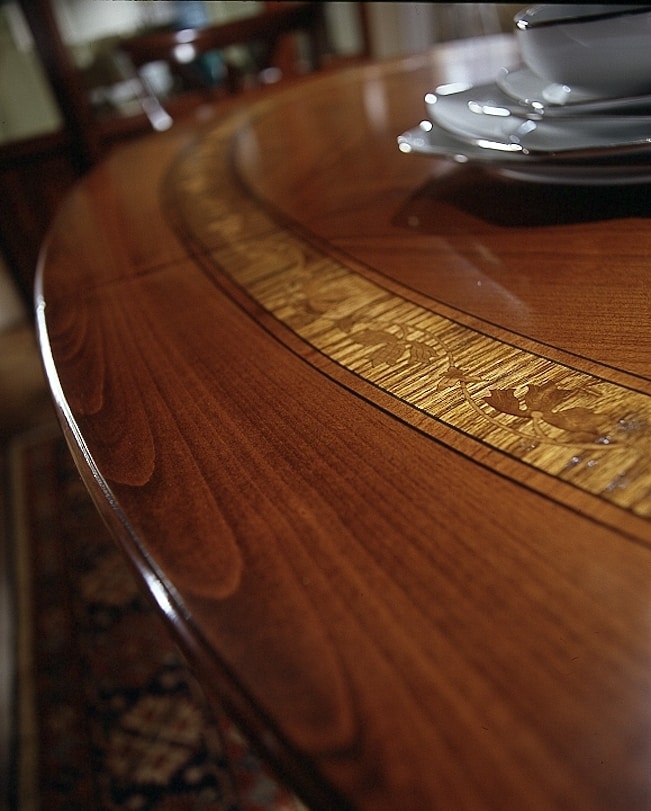 Die Tabellen Ca 'Dolfin sind mit Intarsien aus Kirschholz, die die Anwesenheit jedes Möbelstück mit einem scharfen Auge für praktische Anwendbarkeit des täglichen Lebens zu bereichern. Alle Modelle sind erweiterbar mit 2 Verlängerungen.