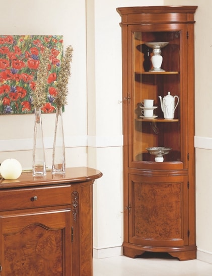 Eckschrank '800 Bruyèreholz mit 1 Glastür und 1 Holztür.