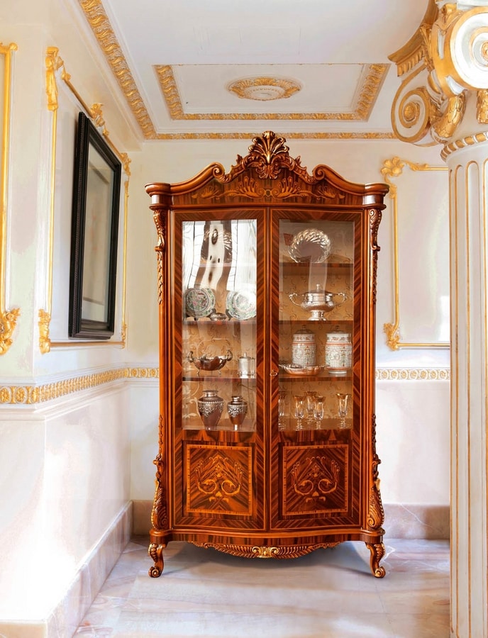 Eingelegte und geschnitzte Holzvitrine. Ausgestattet mit 2 Türen mit Paneelen.