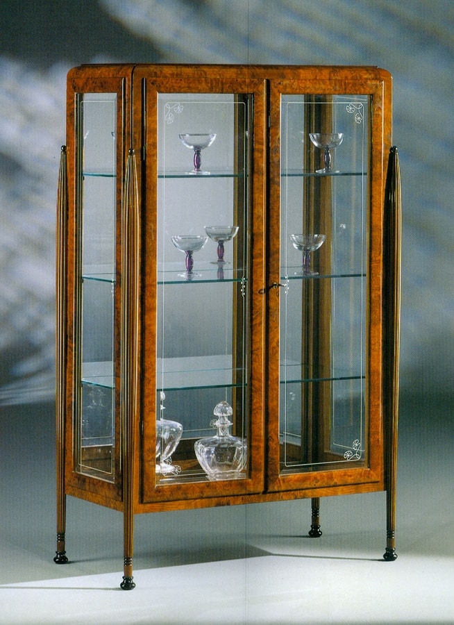 Vitrine de style Art Déco avec 2 portes; structure en loupe d'olive et zebrano.