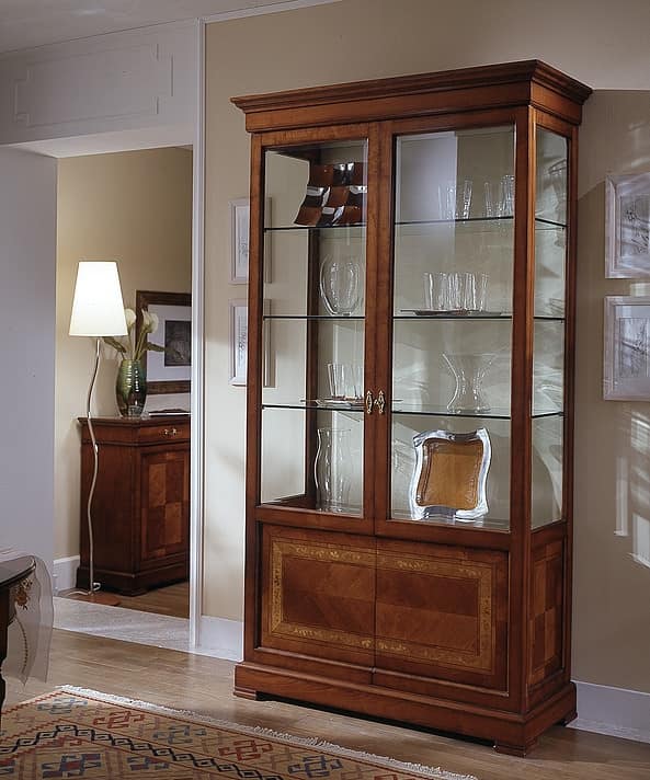 Preise anfordern Ähnliche ProdukteVitrine mit 2 Türen aus Kirschholz mit Blumen Inlay und Glasböden.