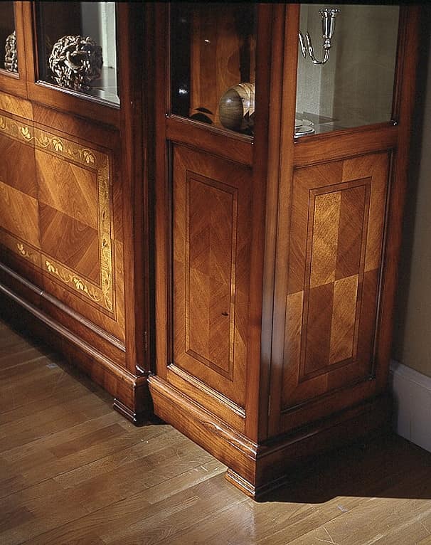 Preise anfordern Ähnliche ProdukteVitrine mit 4 Türen mit floralen Intarsien mit Glasböden und 2 Innenschubladen in der Mitte.
