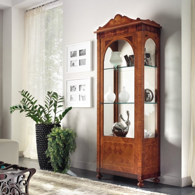 Preise anfordern Ähnliche ProdukteEintürige Vitrine mit transparenten und glatten Glasseiten. Schrank, angereichert mit Olivendornbusch und Bois de Violette, mehrvolumiges Cymatium mit zentraler Einlage. Gedrehte Füße, die den architektonischen Komplex der Möbel auflockern. Einzigartige Werke, die mit alten Techniken geschaffen wurden und die Meisterschaft von der Vergangenheit bis in die Gegenwart übertragen.