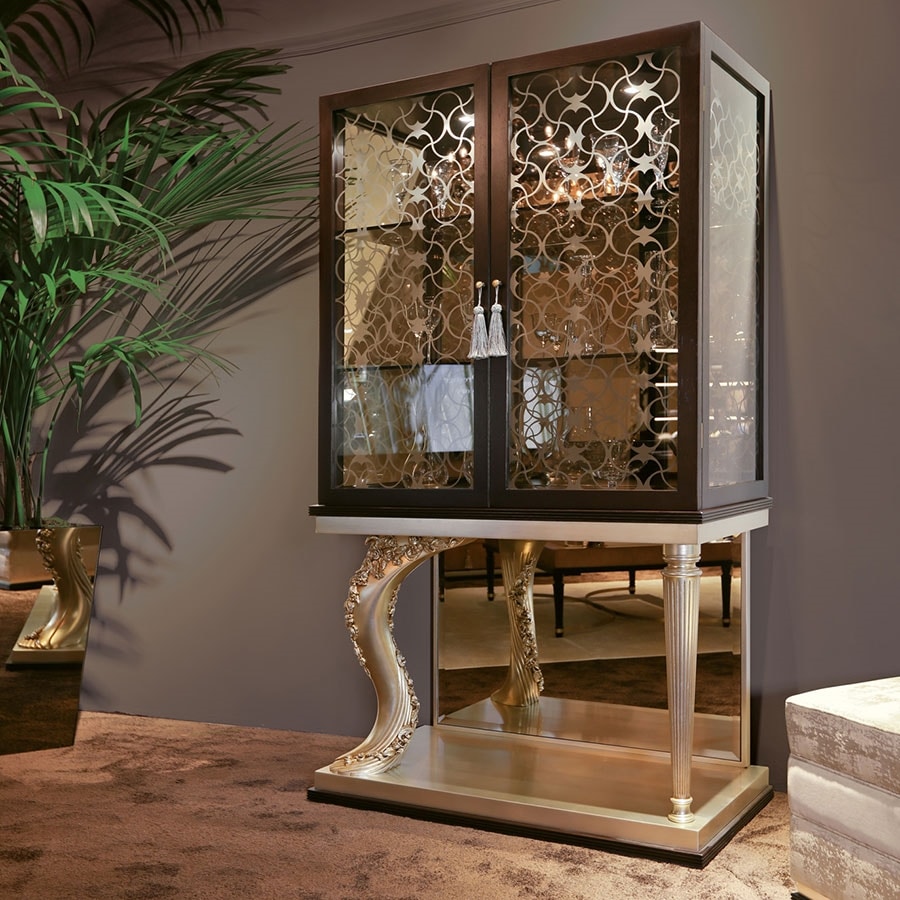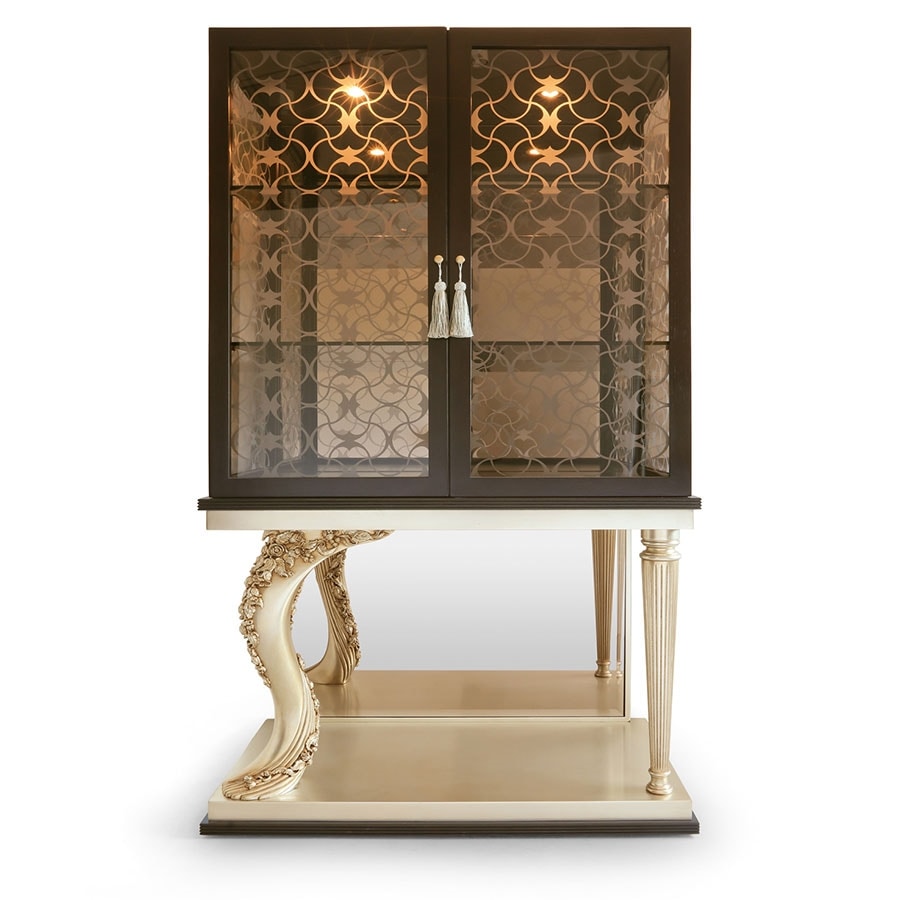 Vitrine mit 2 Eichentüren in eklektischem Design mit weichen Deko-Linien für eine raffinierte Ästhetik in perfekter Balance zwischen Vergangenheit und Gegenwart.