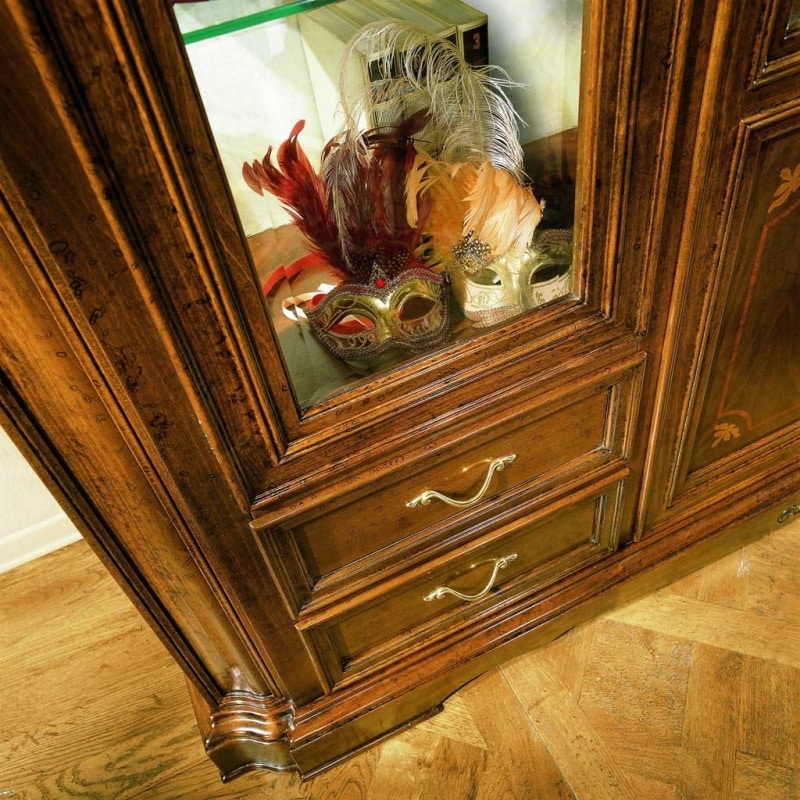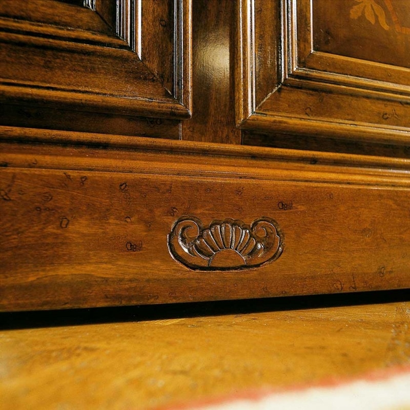 Die Kollektion „I Dogi di Venezia“ enthält Artikel für den Wohn- und Schlafbereich. Es handelt sich um Möbel von großem Prestige, bei denen Sie den Reichtum der Schnitzereien und die Feinheit der Intarsien bewundern können. Die gesamte Serie besteht aus hochwertigen Materialien wie Massivholz für die Türen und Profile, Tischlerplatten für alle Paneele, Sperrholz für die Rückenlehnen, Tannenholz für mit Schwalbenschwänzen gearbeitete Schubladen. Klassische Oberflächen sind für diese Artikel vorzuziehen.