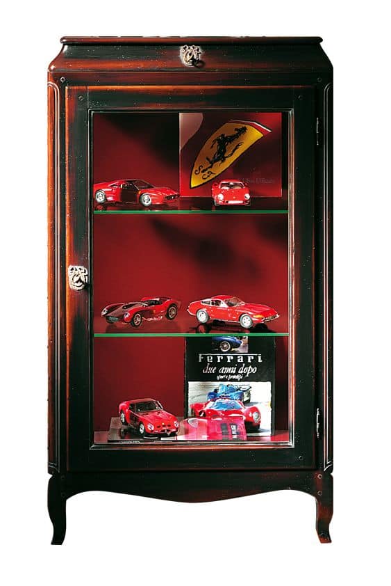 Nussbaum Vitrine mit einer Tür und einer Schublade, Kristall-Regalen, in klassischen Luxus-Stil