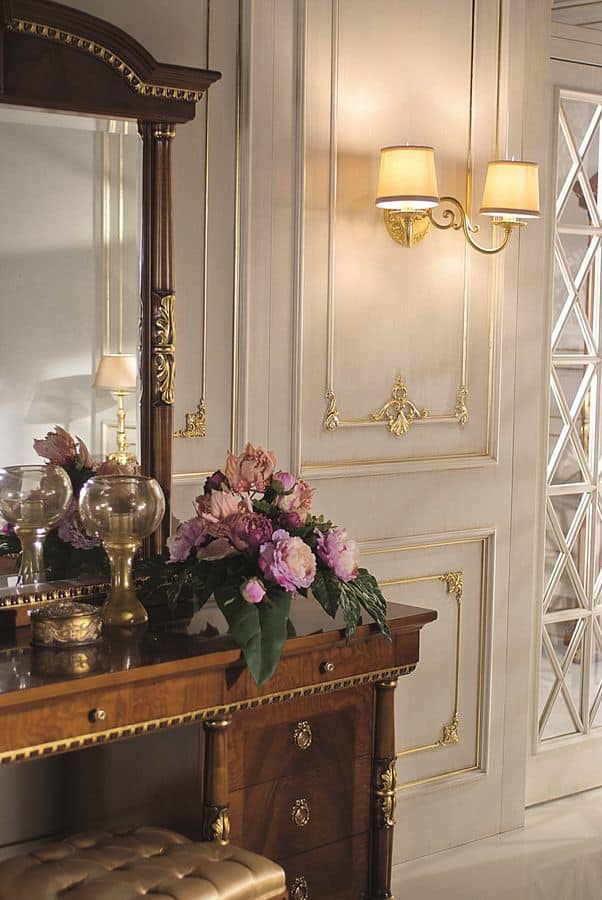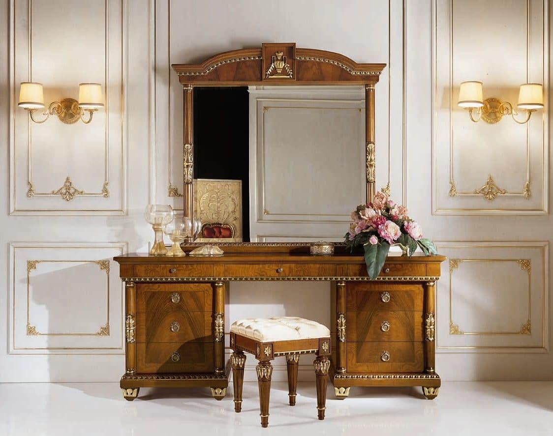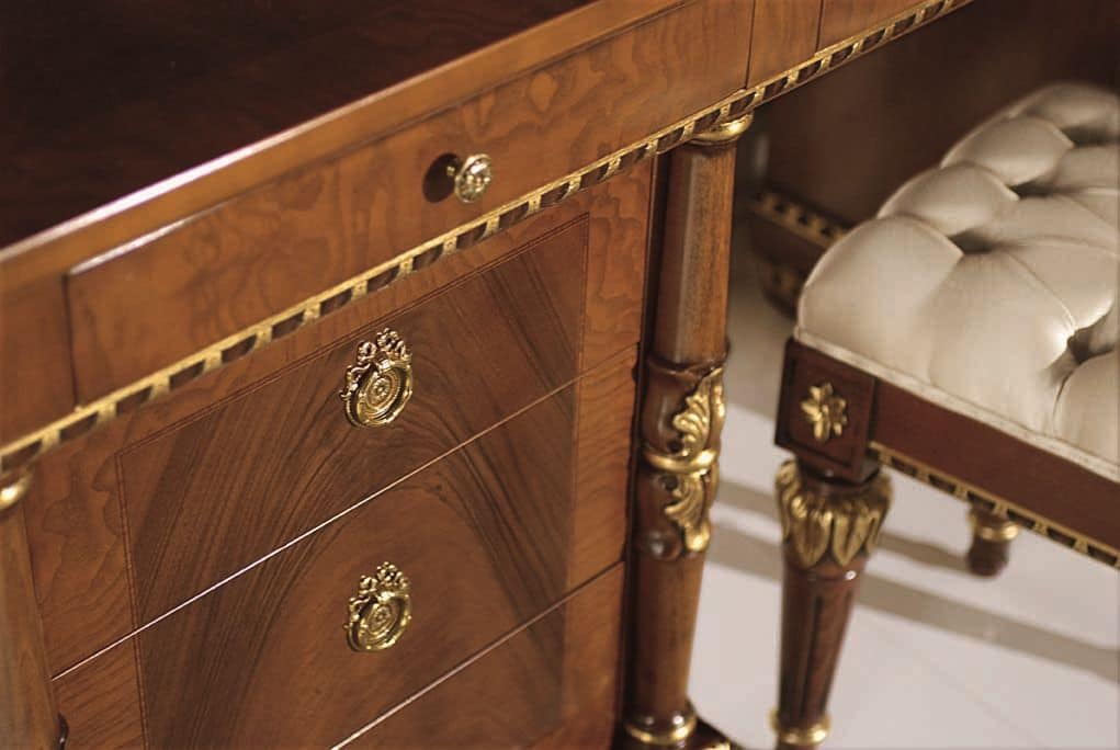 9- Schublade Schminktisch mit Spiegel kombiniert, Furnier Whit Nussbaum und Esche Maser, für Umgebungen im klassischen Stil