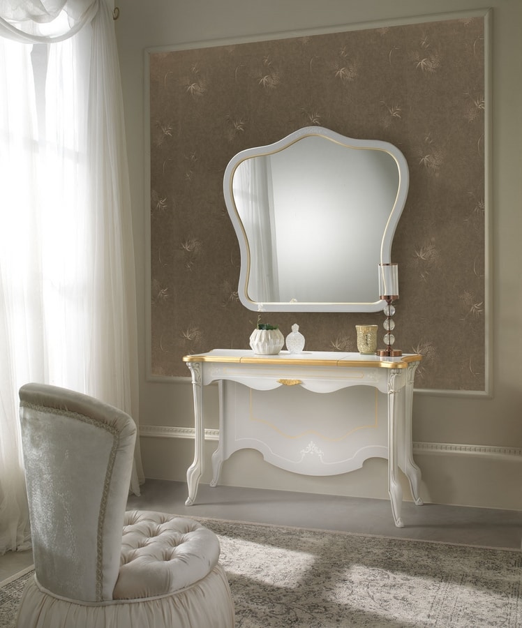 Waschtisch mit Drop-Leaf-Panel. Lackierte Holzstruktur mit Gold- oder Silberblattdetails.