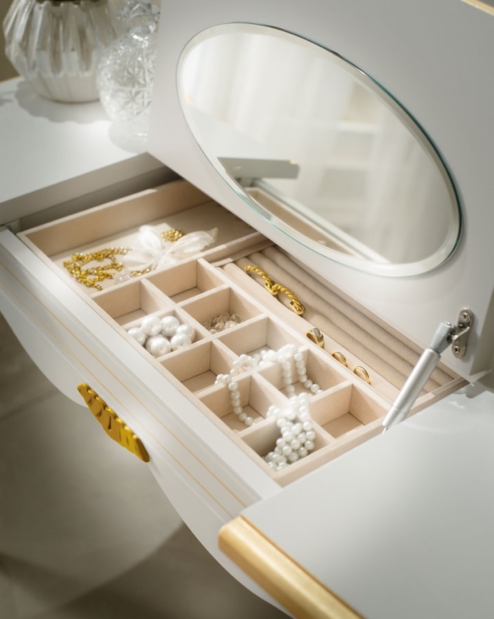 Unsere Gegenstände, unsere Juwelen, alles Geheimnis, das wir am meisten lieben, wo niemand es jemals finden kann. Spiegelspiele, funkelndes Gold, der Stil, der nur uns gehört. Zuhause sollte über die Geschichte erzählen, wer wir sind und eine Sammlung dessen sein, was Sie lieben.