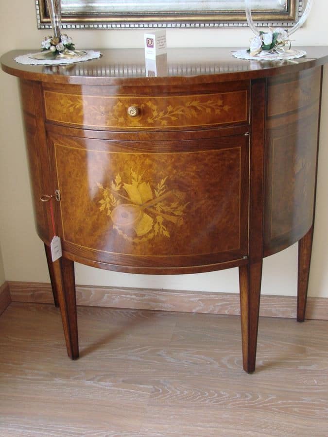 Klassische Möbel mit 1 Tür und Schublade und Inlays.
