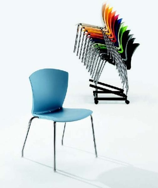 Stuhl mit Metallgestell, Polypropylen-Schale in verschiedenen Farben erhältlich. Platz sparen dank seiner Stapelbarkeit. Erhältlich in feuerfester Ausführung.
