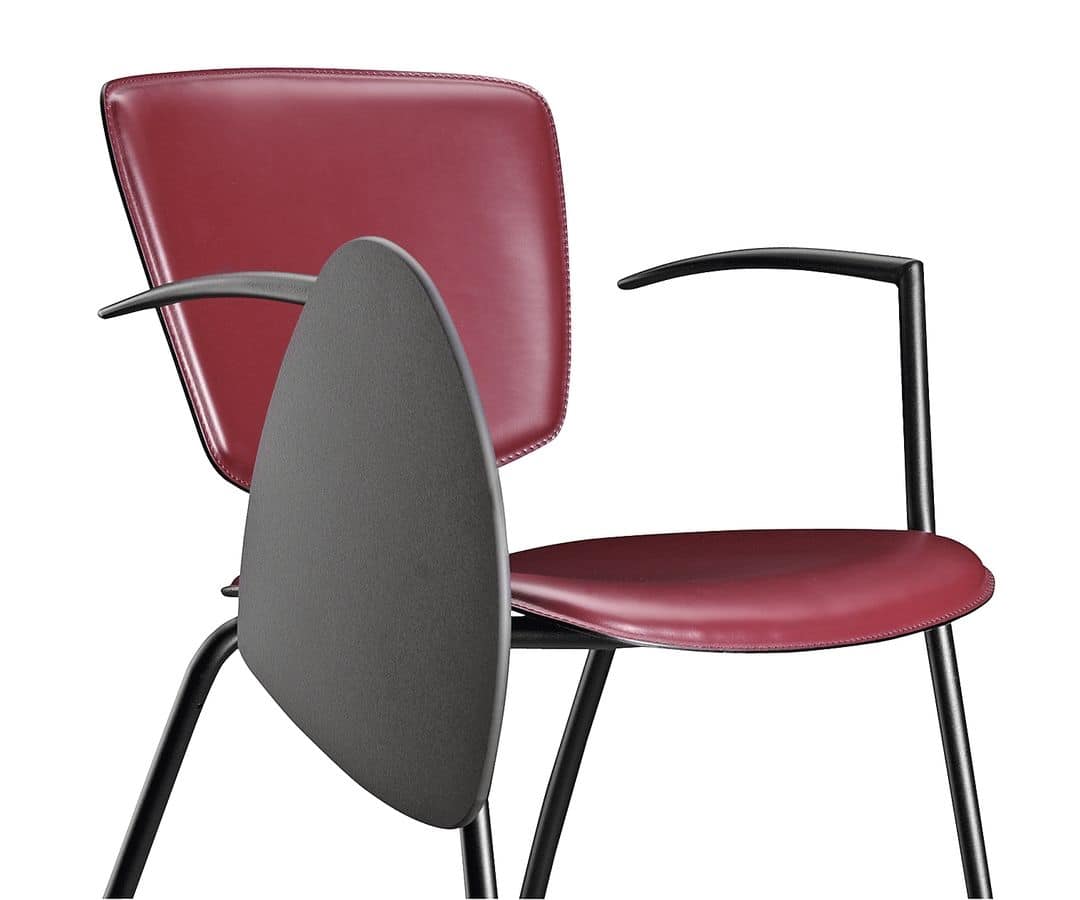 Stuhl aus Metall und Leder, mit Schreibplatte