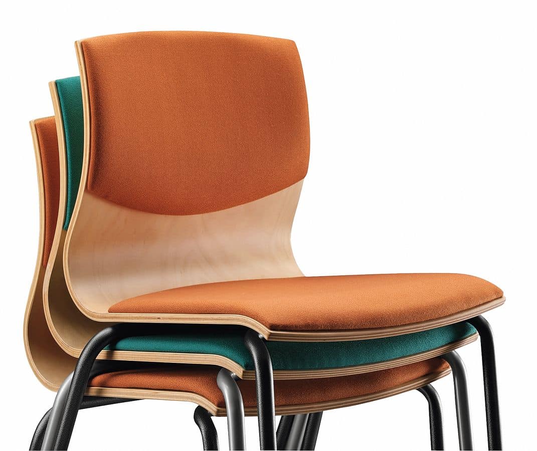 Stuhl mit Metallrahmen, gepolsterter Holzschale