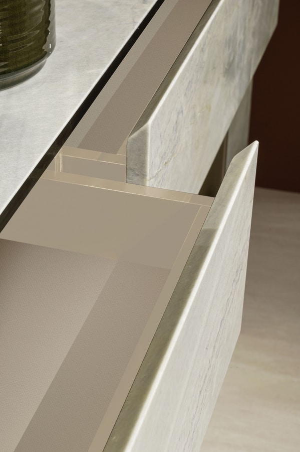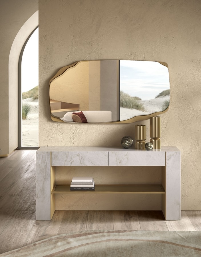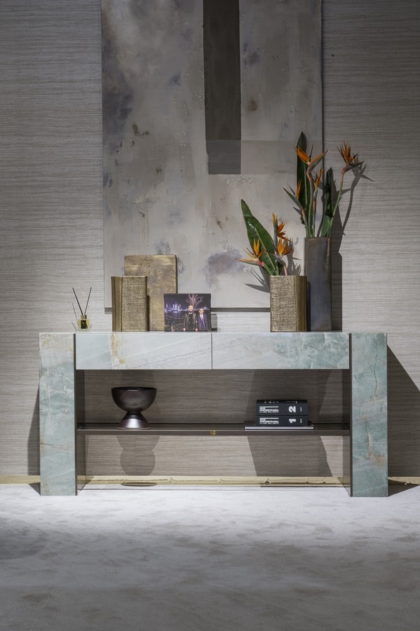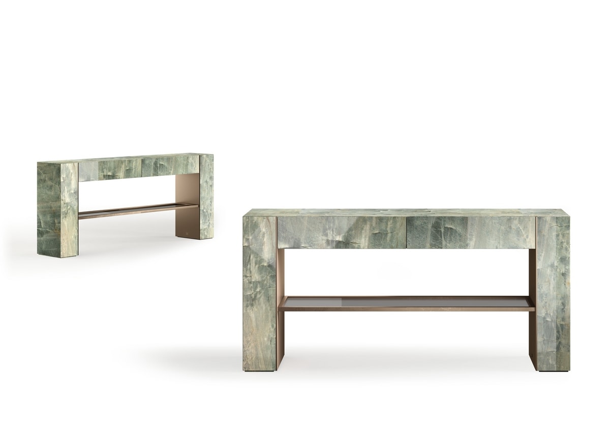 Konsole mit reinen Geometrien und raffinierten Materialien