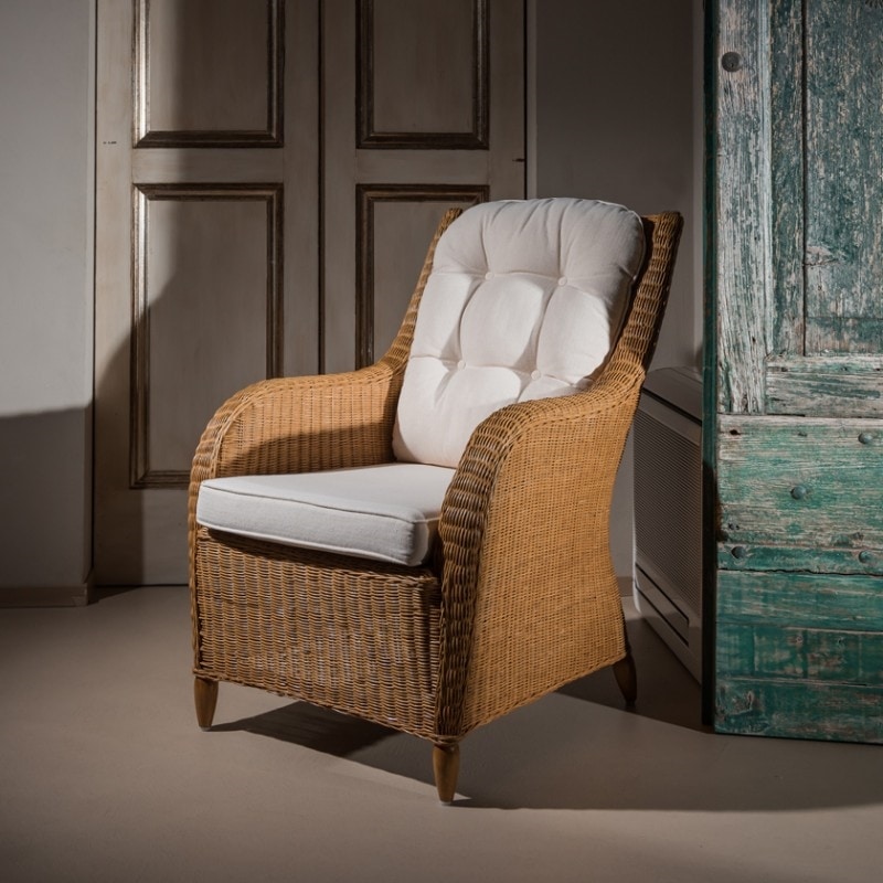 Korbsessel mit Kissen