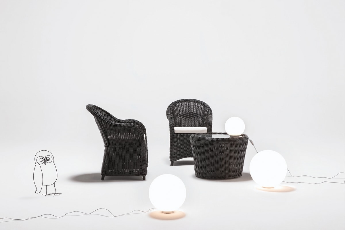 Die Balance zwischen ästhetischer Wahrnehmung und Ergonomie ist sehr elegant und wird durch sorgfältige Detailarbeit in der Herstellungstechnik erreicht. Hergestellt aus synthetischem Weidengeflecht mit Weideneffekt, das über einen Aluminiumrahmen gewebt ist.