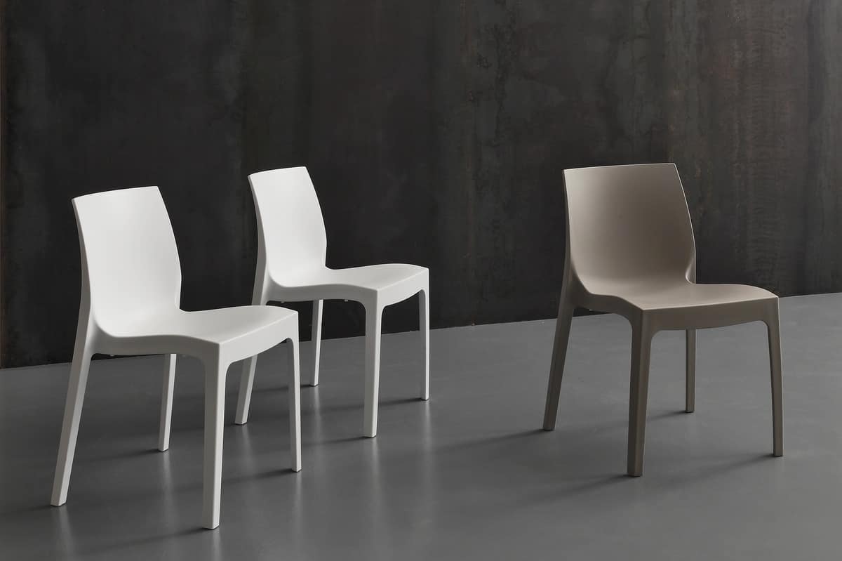 Stapelbarer Stuhl aus mattiertem Polypropylen.