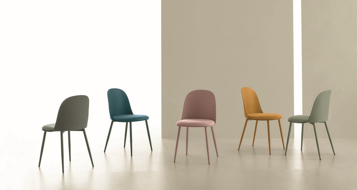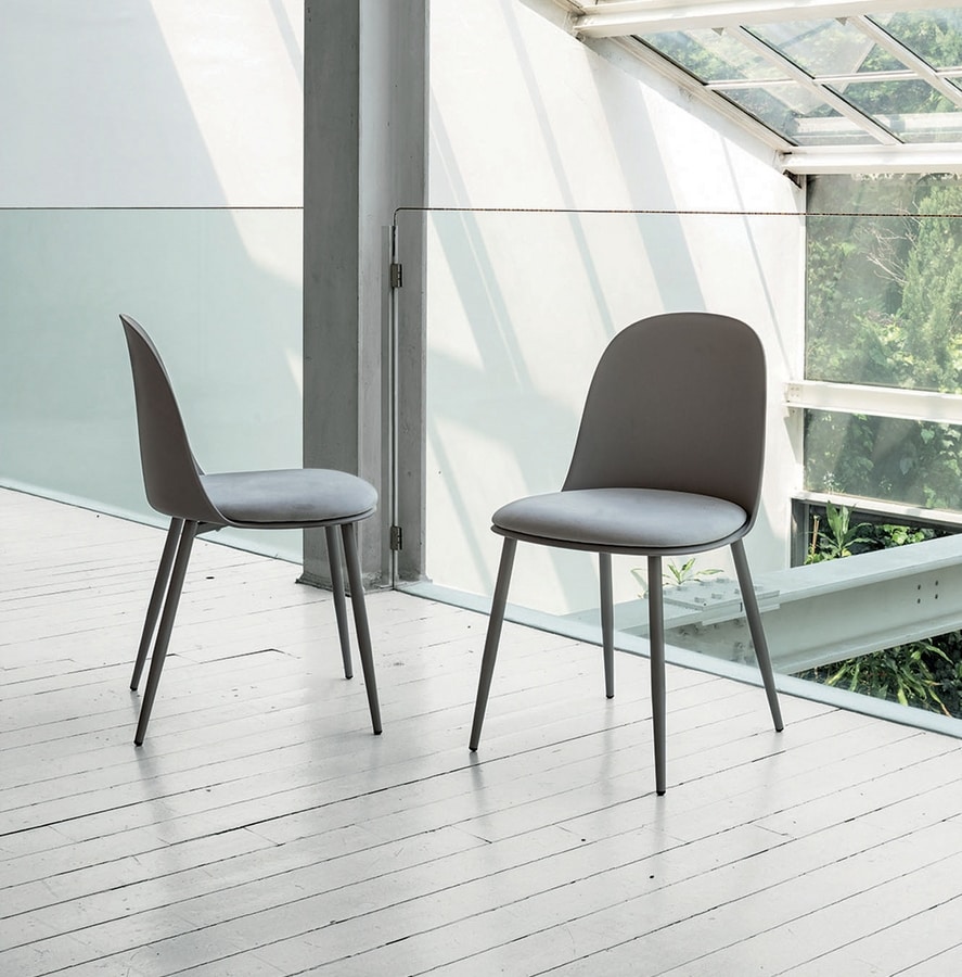 Stuhl aus Polypropylen mit gepolstertem Kissen, bezogen mit weicher Mikrofaser mit Samteffekt.