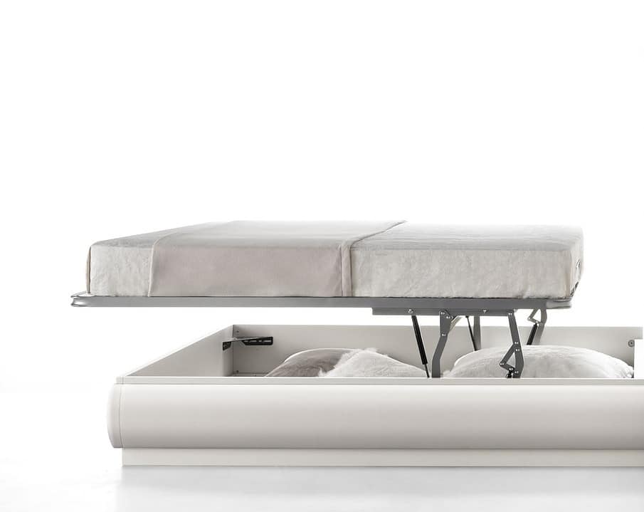 Modernes Bett mit Container und gepolstertem Kopfteil