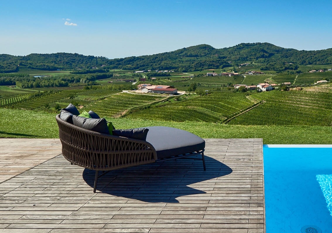 Weiche Formen und großzügige Abmessungen für dieses Möbelstück, das die Drop-Familie vervollständigt. Eine Liege mit üppigem Charme, bei der der Komfort der Polsterung mit dem Design des Gewebes kombiniert wird.