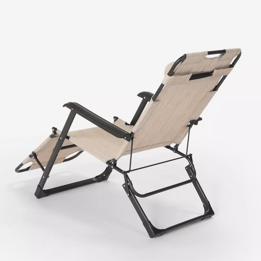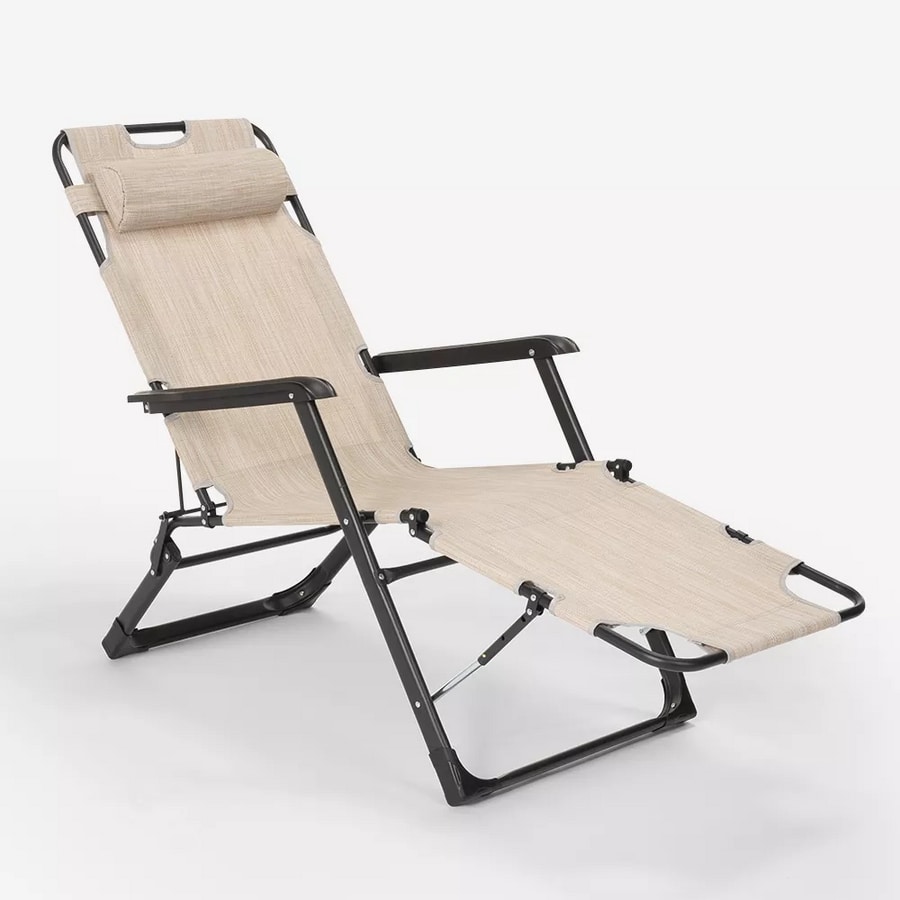 Der Liegestuhl ist klappbar und verstellbar, perfekt für diejenigen, die ihn mühelos transportieren möchten. Er ist außerdem mit hochwertigen reißfesten Nähten und raffinierten Details ausgestattet. Er ist der High-End-Liegestuhl, der jedes Jahr von vielen öffentlichen Einrichtungen in ausgewählt wird.