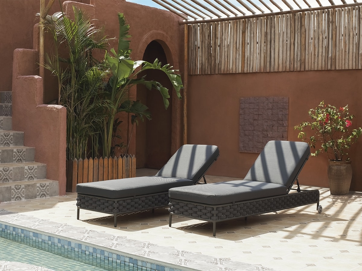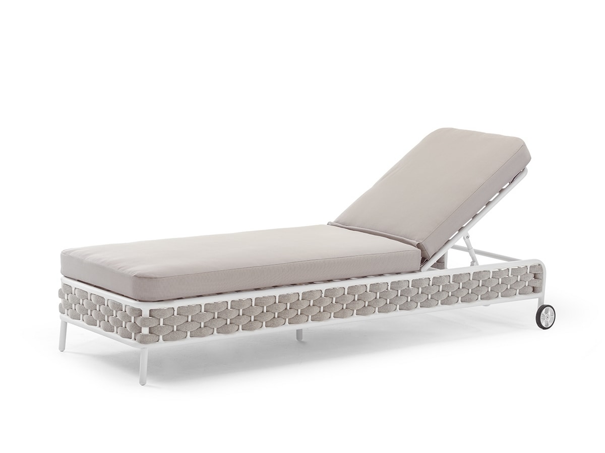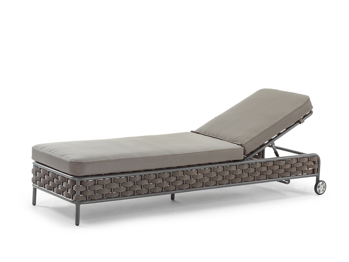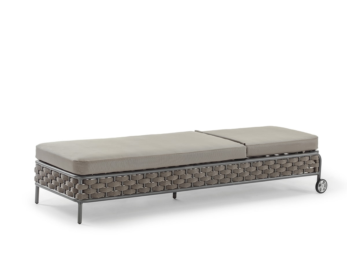 Tauchen Sie ein in die umhüllende Umarmung von Textilene-Seilen in den zarten Taupe-, Braun- oder Beigetönen, die der Liege ein Gefühl von Wärme und Komfort verleihen. Sowohl der Sitz als auch die verstellbare Rückenlehne sind aus wetterbeständigen und korrosionsbeständigen Materialien gefertigt und sorgen für endloses Vergnügen unter der Sommersonne.