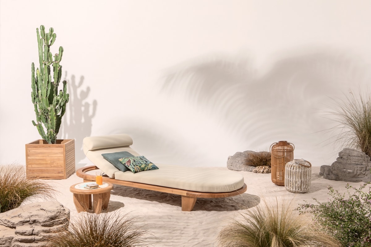 Sonnenliege aus Teakholz, mit bequemer Polsterung