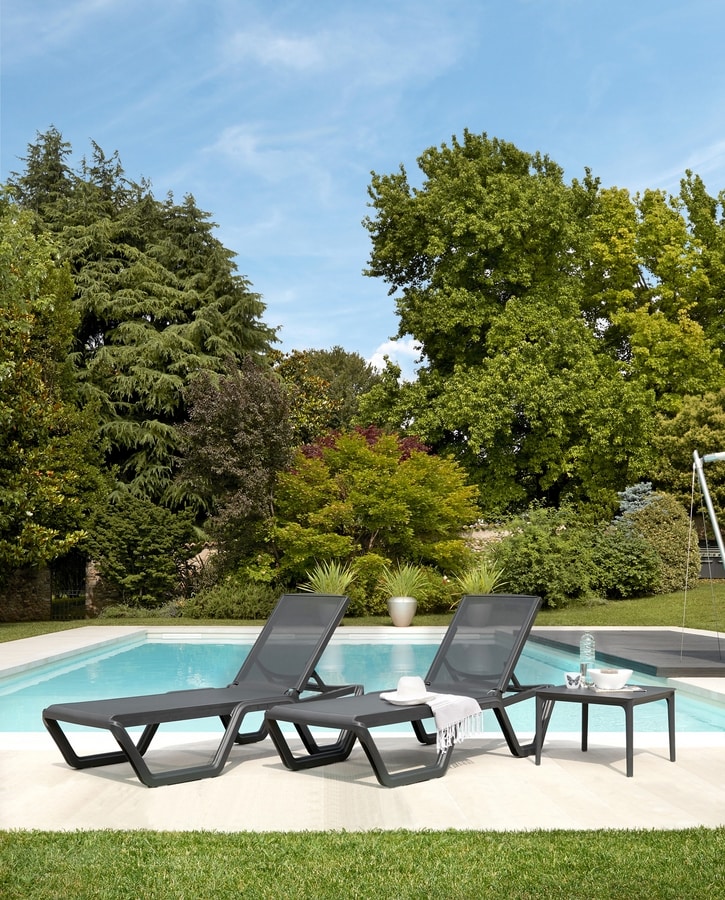 Vela ist eine Sonnenliege, die die Entspannungsregeln neu erfindet. Elegant und funktional, hat es ein zurückhaltendes Design, was bedeutet, dass es sich nahtlos in Außenbereiche einfügt und Strände und Poolseiten schmückt. Es hat einen Rahmen aus mit Glasfaser angereichertem Technopolymer der neuesten Generation, eine verstellbare Rückenlehne, einen schnell wechselbaren Bezug und ist mit Rädern ausgestattet.