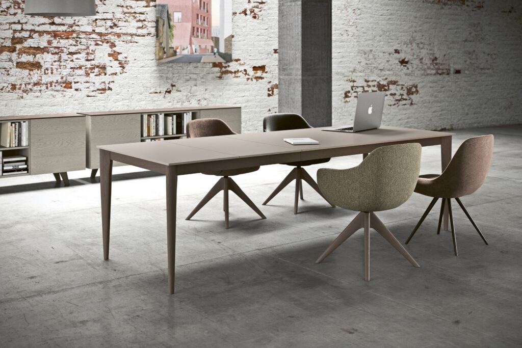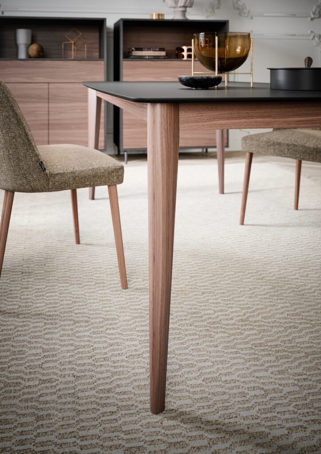 Moderner Tisch mit konischen, nach innen gedrehten Beinen