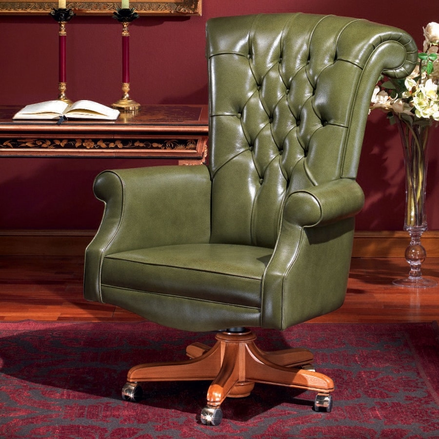 Preise anfordern Ähnliche ProdukteDieser Bürostuhl ist ideal für diejenigen, die maximalen Komfort suchen. Die Standard-Capitonné-Polsterung unterstreicht besonders den Luxus dieses Modells, bei dem hochwertige Naturleder verwendet werden, Anilin-Barrel gefärbt, Vollnarbe mit zweifarbigen Effektpigmenten, seidenmattes Aussehen.